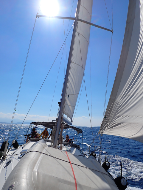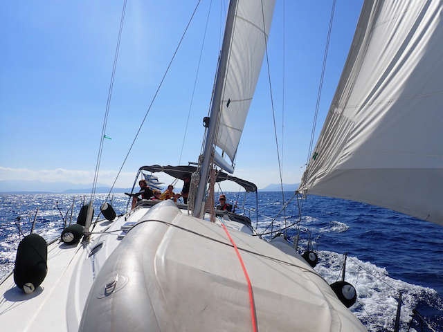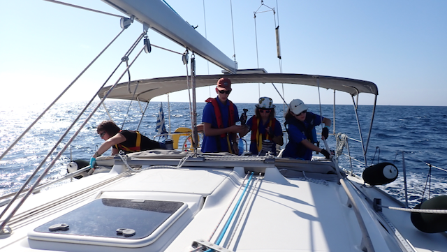 Две недели в греческих водах — это не просто отдых. Каждый день ребята несли ходовые вахты, учились читать карту и определять своё место по береговым ориентирам, отрабатывали швартовку и съёмку с якоря в разных условиях. Самые смелые попробовали себя на руле ночью — в свете навигационных огней и звёздного неба.