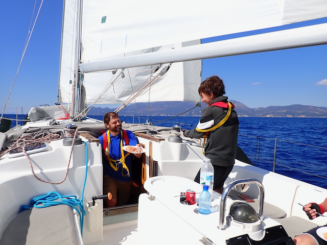 Особую атмосферу создавали стоянки в маленьких бухтах, где нет туристической суеты — только яхты, рыбаки и запах соли. Вечерами готовили ужин на камбузе, разбирали ошибки дня и строили планы на следующий переход. Это и есть настоящая морская школа жизни.