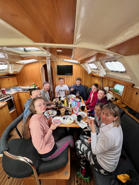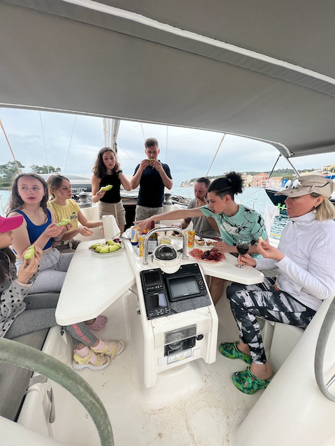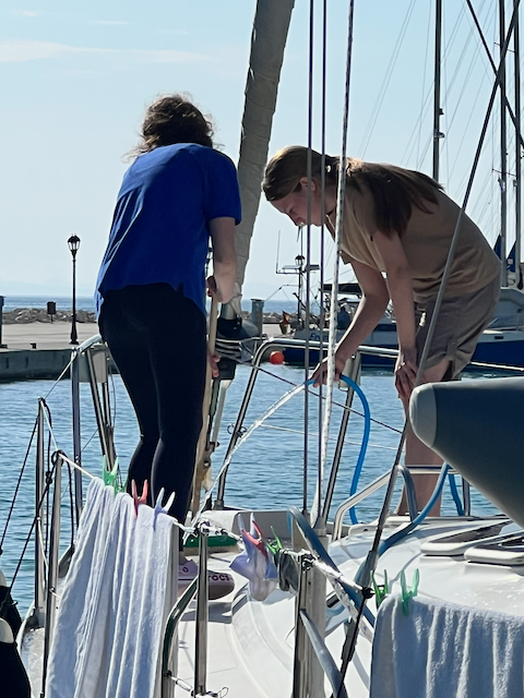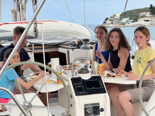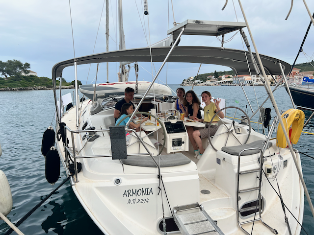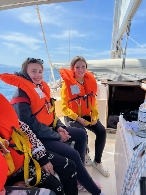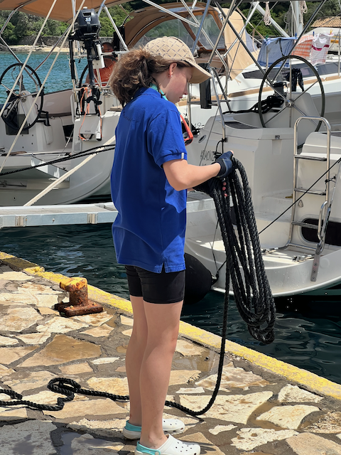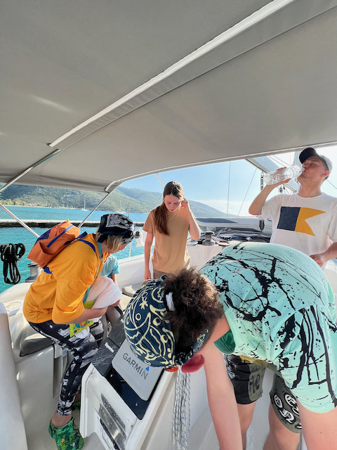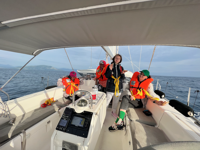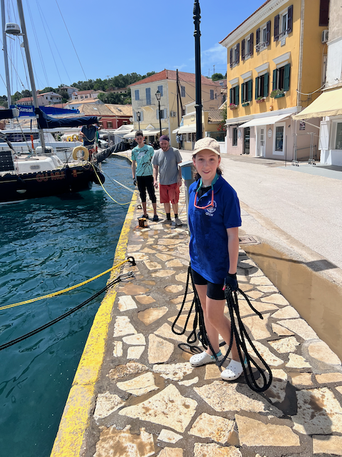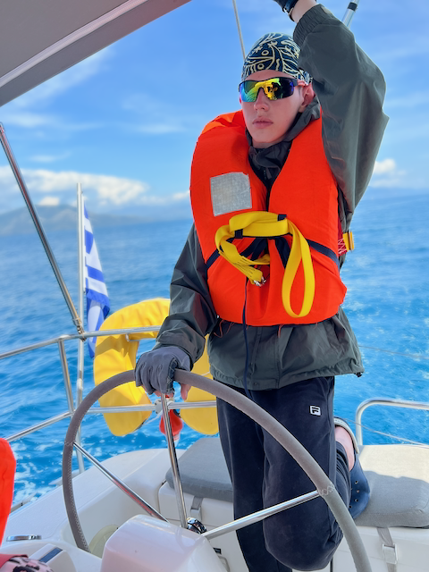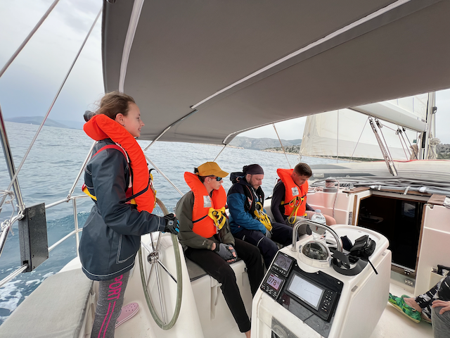 И вот — раннее утро, Корфу, лёгкий морской ветер, и первые шаги по палубе. Хотя май встретил нас весенней свежестью, ребята с энтузиазмом вышли в море. За неделю они прошли настоящую морскую практику: ставили паруса, управляли яхтой, работали с такелажем и — да, даже сами ставили лодку на якорь! Девочки показали себя не менее уверенно и профессионально, чем мальчики — особенно на тренировке с швартовыми концами у острова Паксос.